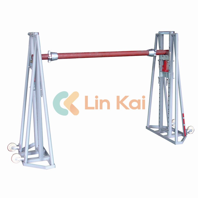 हे हेवी ड्युटी उपकरणे मोठ्या केबल ड्रमला आधार देण्यासाठी हायड्रॉलिक जॅकसह सुसज्ज आहेत आणि ब्रेक सिस्टमसह, फूट ब्रेक वापरून. सहज देखभाल करण्यायोग्य केबल ड्रम स्टँड तीन भागांनी बनलेले आहेत: एका धुरासह दोन स्टँड. बेस लहान चाकांसह स्थापित केला आहे, यामुळे कामगारांना केबल घालण्याच्या प्रकल्पात एकत्र करणे आणि वाहतूक करणे सोपे आहे.