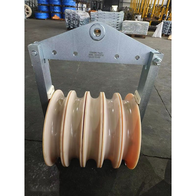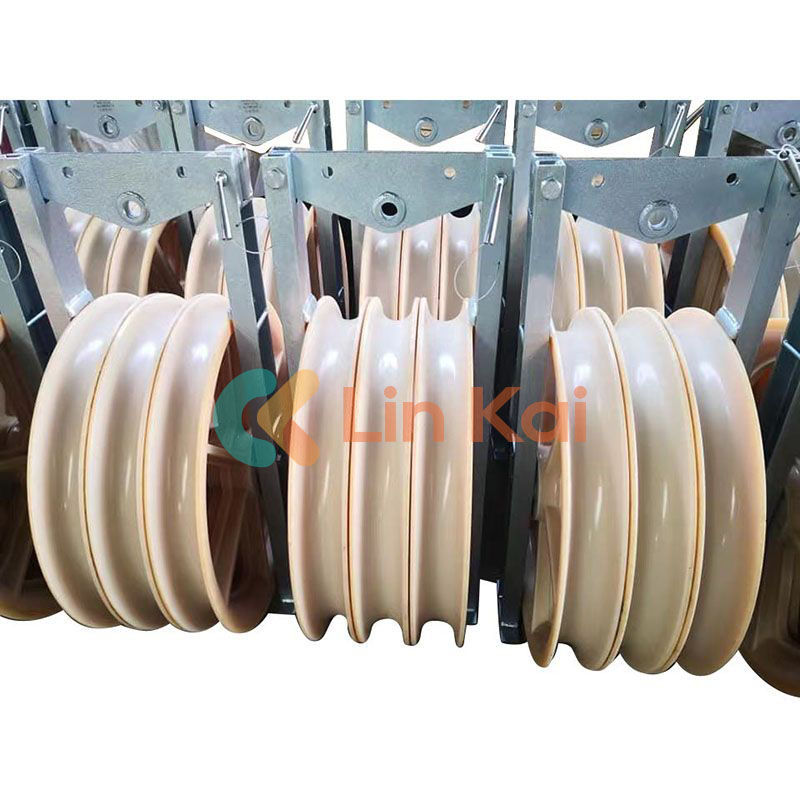 लिंगकाई ट्रान्समिशनचे 508 मिमी मोठ्या व्यासाचे स्ट्रिंगिंग ब्लॉक्स जड भार हाताळण्यास सक्षम आहेत आणि ते ट्रान्समिशन लाइन बांधकाम, वितरण लाइन बांधकाम आणि सबस्टेशन प्रकल्पांमध्ये वापरले जाऊ शकतात. ते उच्च-शक्तीच्या ॲल्युमिनियम मिश्र धातुच्या शीव्ह, कास्ट स्टील शीव्ह आणि एमसी नायलॉनपासून बनविलेले आहेत. घर्षण कमी करण्यासाठी आणि स्ट्रिंगिंग प्रक्रियेदरम्यान कार्यक्षमता वाढवण्यासाठी सर्व शेव्स बॉल बेअरिंगवर बसवले जातात.